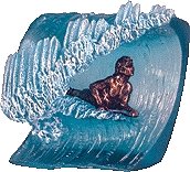 Magnet-approx. 3 inches square. Made of acrylic New from surf artist Phil Roberts. This unique magnet feature clear blue waves and bronze tone riders in the barrel. Amazing detail-including bicep leashes!
