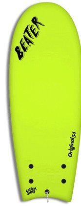 NOW WITH FREE SHIPPING TO ANY MAINLAND USA ADDRESS! Created by the freaks at Catch Surf, the Beater Original is destined to take over the world! Surf it with or without fins, bodyboard or skim it, do whatever the heck you want. The Beater can turn an average beach day into an epic tale of radness! Now shred. IMPROVED FOR 2012! All-new stronger, lighter and water resistant core with dual (x2) maple-ply wood stringers and thicker/stronger bottom slick for the stiffest, most durable and highest-performing Beater ever made! Available in six (6) new color-ways. Single-Fin model comes with all-new 4.5" raked fin and Twin-fin comes with 3.5" keel fins. All-purpose, customizable shred stick! Fun for all skill levels! And can take a Beating! Tapered D-rails and twin-channel crescent tail for finless performance. Dual-composite core with twin maple-wood stringers. Old-School 8lb PE deck and impact resistant HDPE slick skin. Pop-thru leash plug at tail. Soft pop-thru removable fins (single and twin fin models only). Requires surf wax for grip. 48 Beater is recommended for smaller Groms or Adults (up to 165lbs) that require a board less than 4 for use in local black-balled beaches (i.e. T-Street in San Clemente). 54 Beater is recommended for older Groms and Adults up to 175lbs where restriction is less than 5. The Beater Original is great for all skill levels. Beginners can ride as a bodyboard and skimboard then progress to stand-up riding. Intermediate to advance riders can also use as a finless or finned surfboard. Suggested wave height is knee to shoulder high.